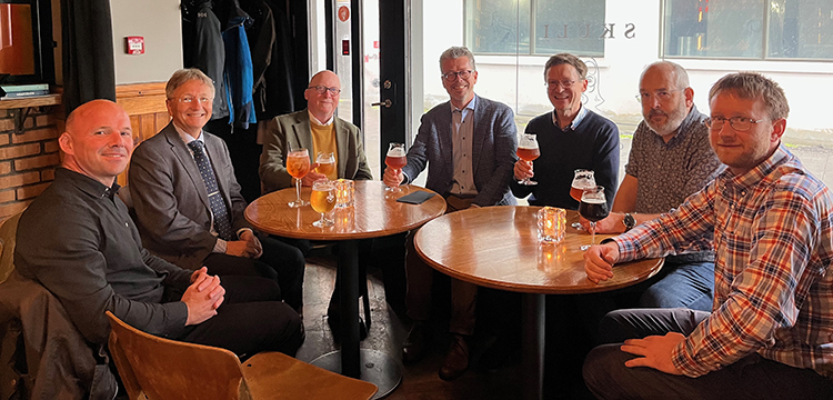 På Skúli Craft Bar. Fra venstre: Lasse Mårtensson (Uppsala), Odd Einar Haugen (Bergen), Karl G. Johansson (Oslo), Haraldur Bernharðsson (Reykjavík), Rune Kyrkjebø (bergen), Peder Gammeltoft (Bergen), Ivar Berg (Trondheim).