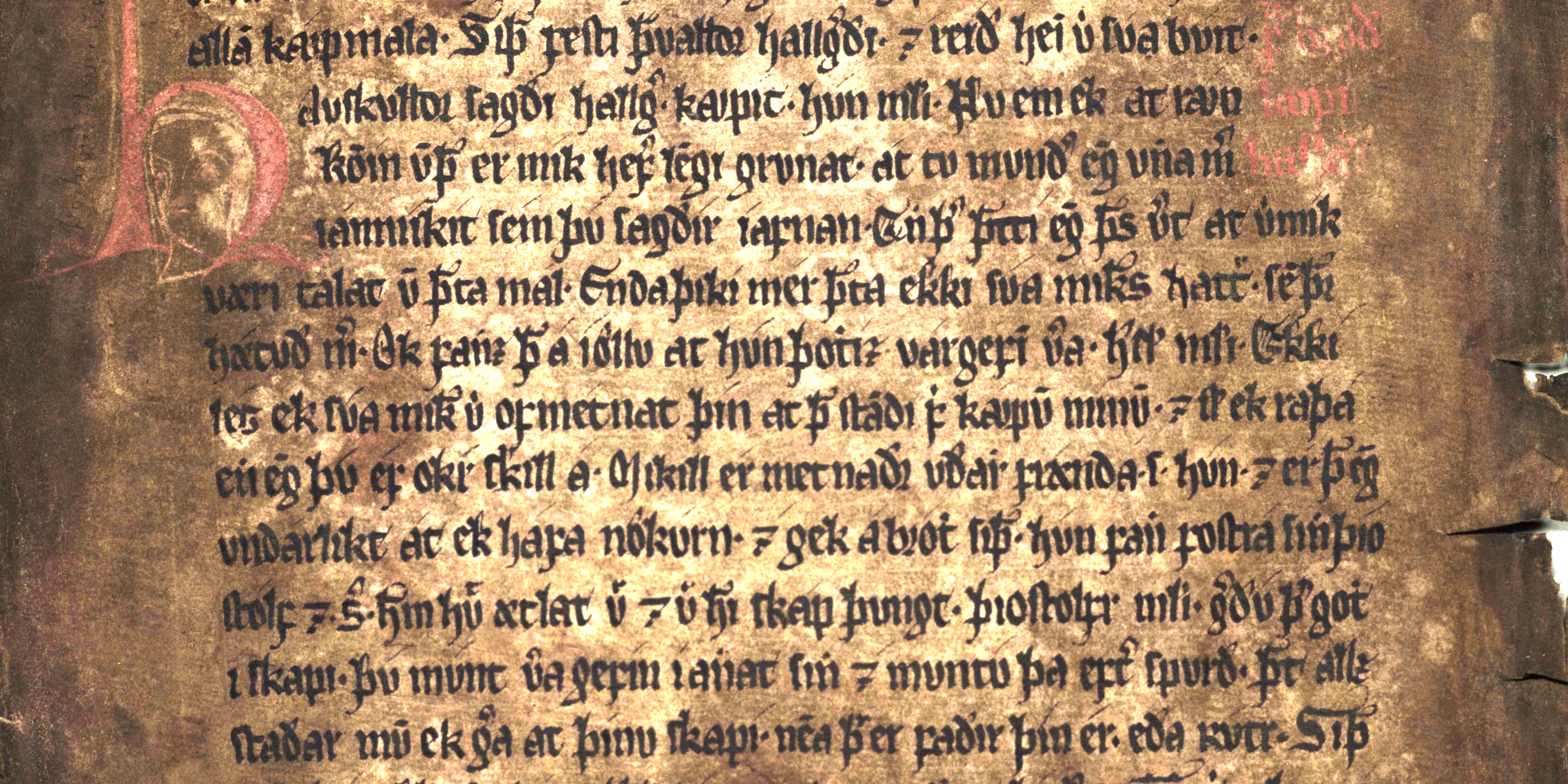 Ill. 10.2 The opening of a homily on the Virgin Mary in The Old Norwegian Homily Book. AM 619 4to, f. 63r, l. 13–20.