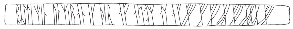 The Norwegian transitional futhark was used in the early 11th century and is characterised by containing long-branch as well as short-twig rune forms. It is also known under the rather confusing name “de (eldre) ‘norske’ runer” (NIyR V: 242–243) in spite of being a futhark of younger runes. Michael Barnes opts for “the Norwegian ‘mixed’ futhark” (2012: 61–62), while we have termed it a transitional type of futhark.