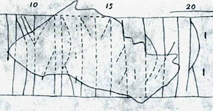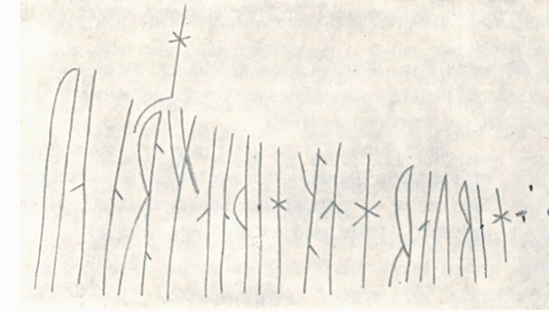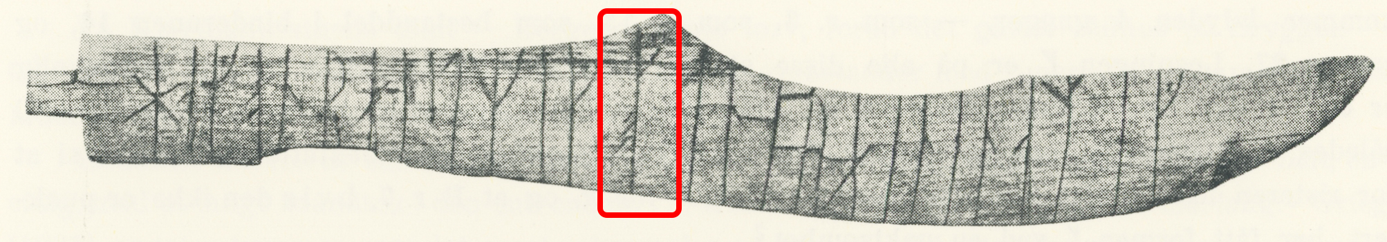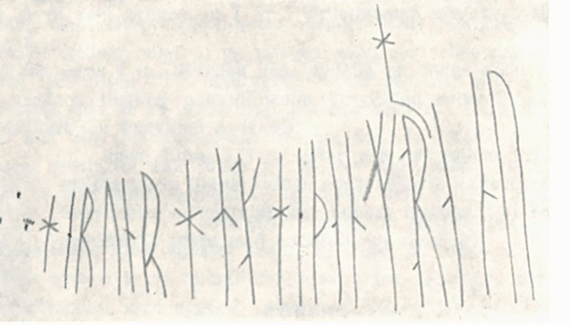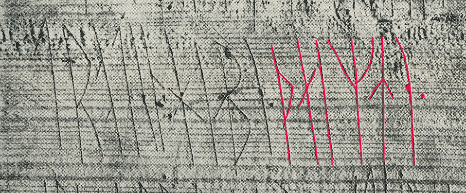 Ill. 18.1 (b). N 146 flipped horisontally. Note that the branches are now located in their usual position with the exception of the very last rune. This was perhaps kept in its reversed form so that it mirrored the first ᚴ k rune.